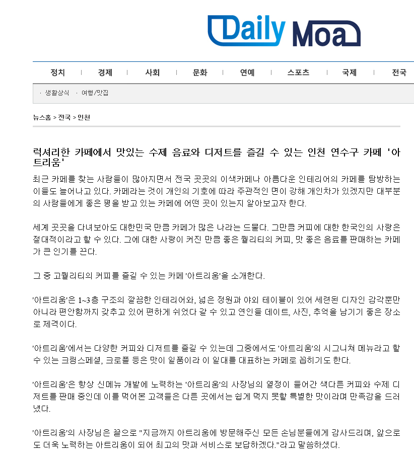 송도 아트리움 데일리모아 기사